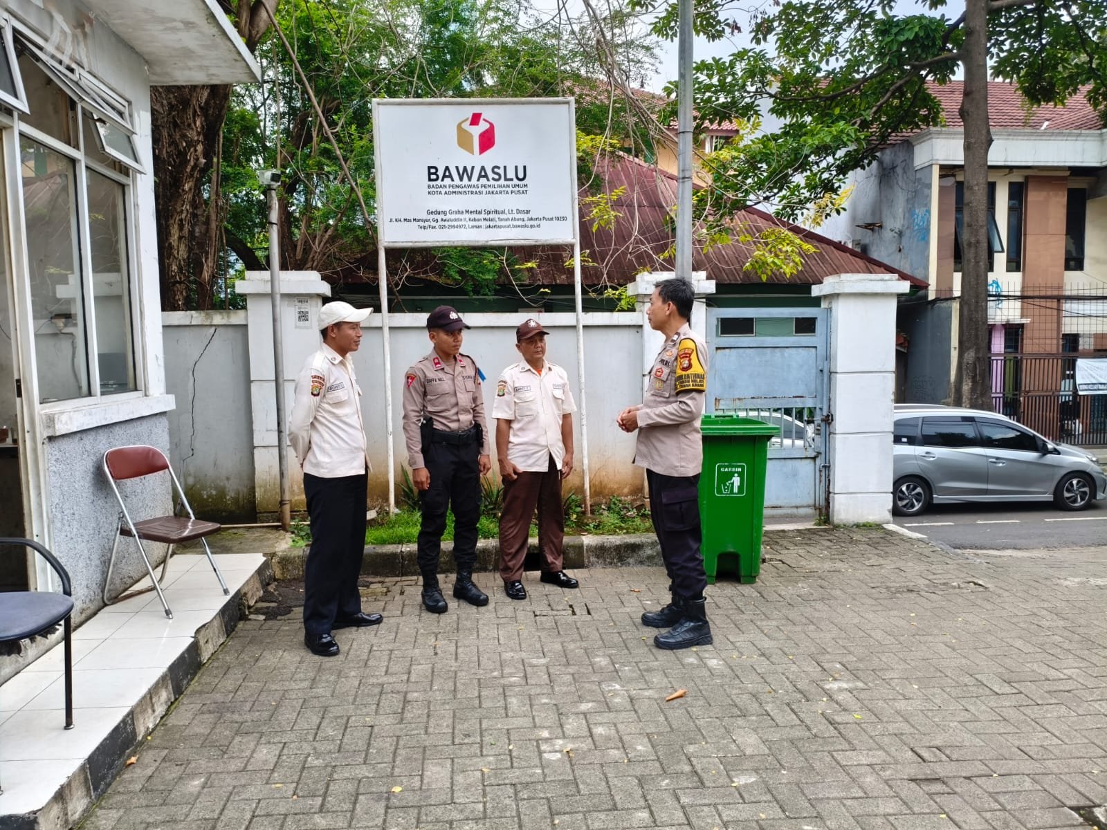 Dalam kegiatan sambang tersebut, petugas bertemu dengan petugas keamanan Gedung Bawaslu Jakarta Pusat, Bapak Bowo, guna menjalin komunikasi serta menyampaikan pesan-pesan kamtibmas terkait situasi keamanan lingkungan.