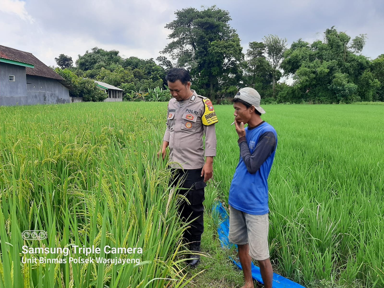 Di lapangan, Aipda Mahendra turut berdialog dengan para petani terkait kondisi tanaman padi serta kendala yang dihadapi selama masa tanam hingga panen.