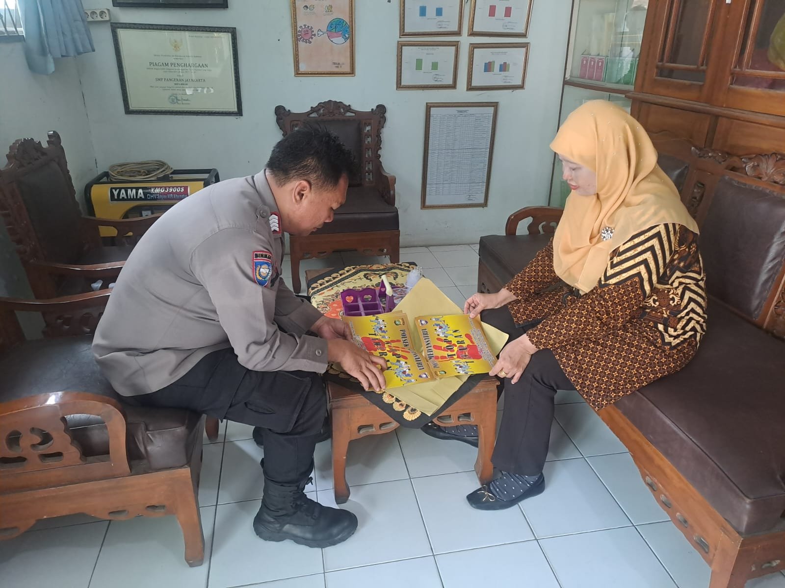 refubliknews.com, – BEKASI KOTA,- Bhabinkamtibmas Kelurahan Harapan Mulya, Bripka Yophi Prima, SH, melaksanakan kegiatan pemberian dan pemasangan brosur anti-tawuran di SMP Pangeran Jayakarta, Kelurahan Harapan Mulya, Kecamatan Medan Satria, Kota Bekasi.(2/10/24)