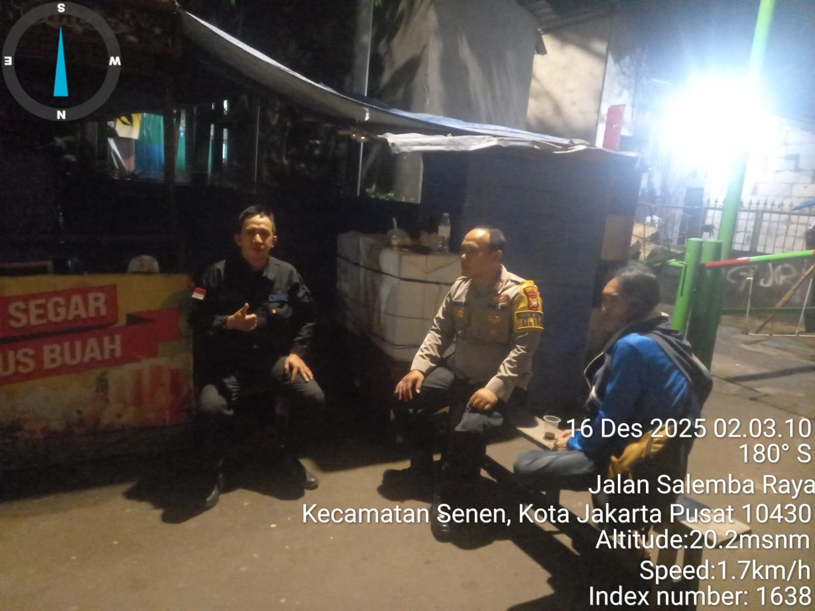Jakarta Pusat — Dalam rangka menjaga stabilitas keamanan dan ketertiban masyarakat, Bhabinkamtibmas Kelurahan Kenari melaksanakan kegiatan cooling system dengan menyambangi petugas Satkamling RW 03 di wilayah Kelurahan Kenari, Kecamatan Senen, Jakarta Pusat, pada Selasa (16/12/2025).