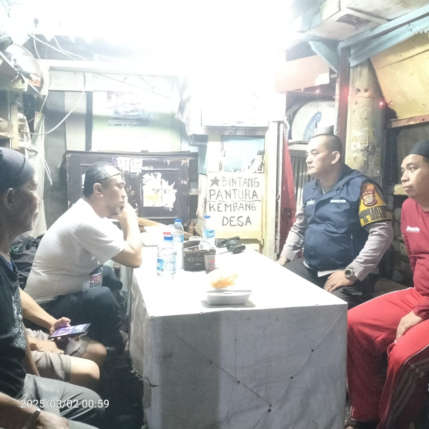 Dalam kunjungannya, Aiptu Roby bertemu dengan Bambang, petugas Satkamling RT 04 RW 03, serta perwakilan Lembaga Musyawarah Kelurahan (LMK). Ia memberikan sejumlah imbauan terkait keamanan lingkungan, terutama menjelang dini hari yang sering menjadi waktu rawan tindak kriminalitas.