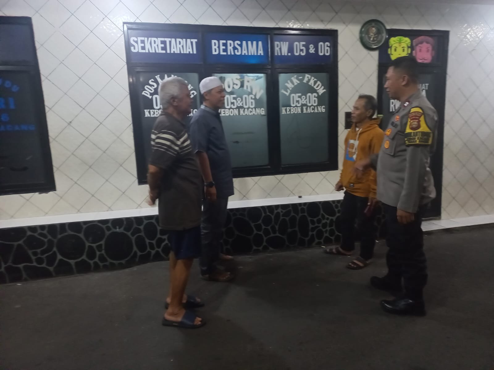 Kegiatan yang dimulai malam hari berlangsung dengan penuh keakraban bersama para petugas keamanan lingkungan. Hadir dalam kegiatan tersebut di antaranya awak kamling Bapak Syahlani serta awak siskamling Bapak Amron yang secara aktif menjalankan tugas penjagaan lingkungan.