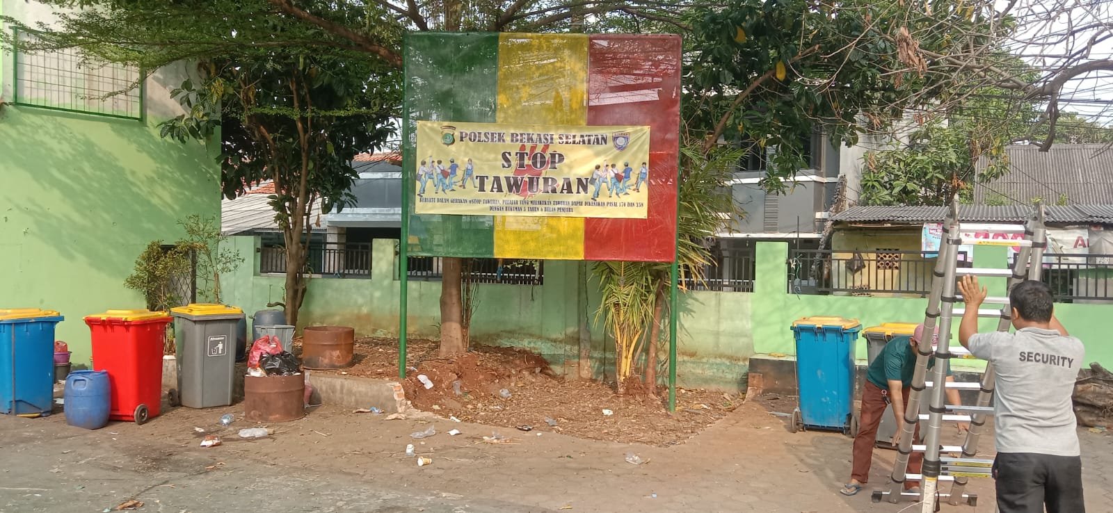 refubliknews.com, – BEKASI KOTA,- Bhabinkamtibmas Aiptu M. Fathulloh, S.Sos.i dari Kelurahan Jaka Setia, Bekasi Selatan, melakukan pemasangan spanduk bertuliskan “STOP TAWURAN” di Sekolah YPI AL MUAWWANAH, Kampung Ceger RT 02/18, Kelurahan Jaka Setia.(2/10/24)