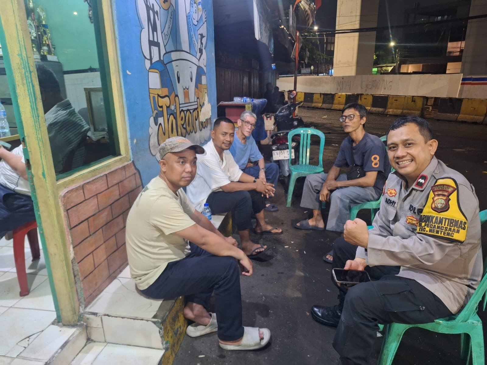 refubliknews.com, || Jakarta Pusat – Dalam rangka menjaga situasi kamtibmas yang aman dan kondusif di wilayah binaan, Bhabinkamtibmas Kelurahan Pegangsaan, Aipda H. M. Adhy M.N, melaksanakan kegiatan sambang dan patroli dialogis bersama warga di Pos Keamanan RW 06 Tambak Ujung, Kelurahan Pegangsaan, Kecamatan Menteng, Jakarta Pusat, pada Minggu malam (20/4/2025).