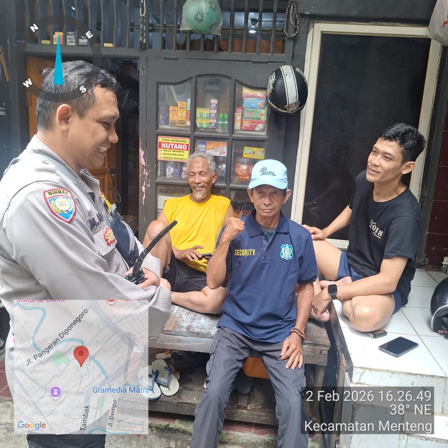 Jakarta Pusat – Dalam rangka menjaga stabilitas keamanan dan ketertiban masyarakat (kamtibmas), Bhabinkamtibmas Kelurahan Pegangsaan, Polsek Metro Menteng, Aipda H. M. Adhy M. N, melaksanakan kegiatan sambang kamtibmas di Jalan Kalasan RT 01 RW 02, Kelurahan Pegangsaan, Kecamatan Menteng, Jakarta Pusat, pada waktu yang telah ditentukan. Senin (2/2/2026)