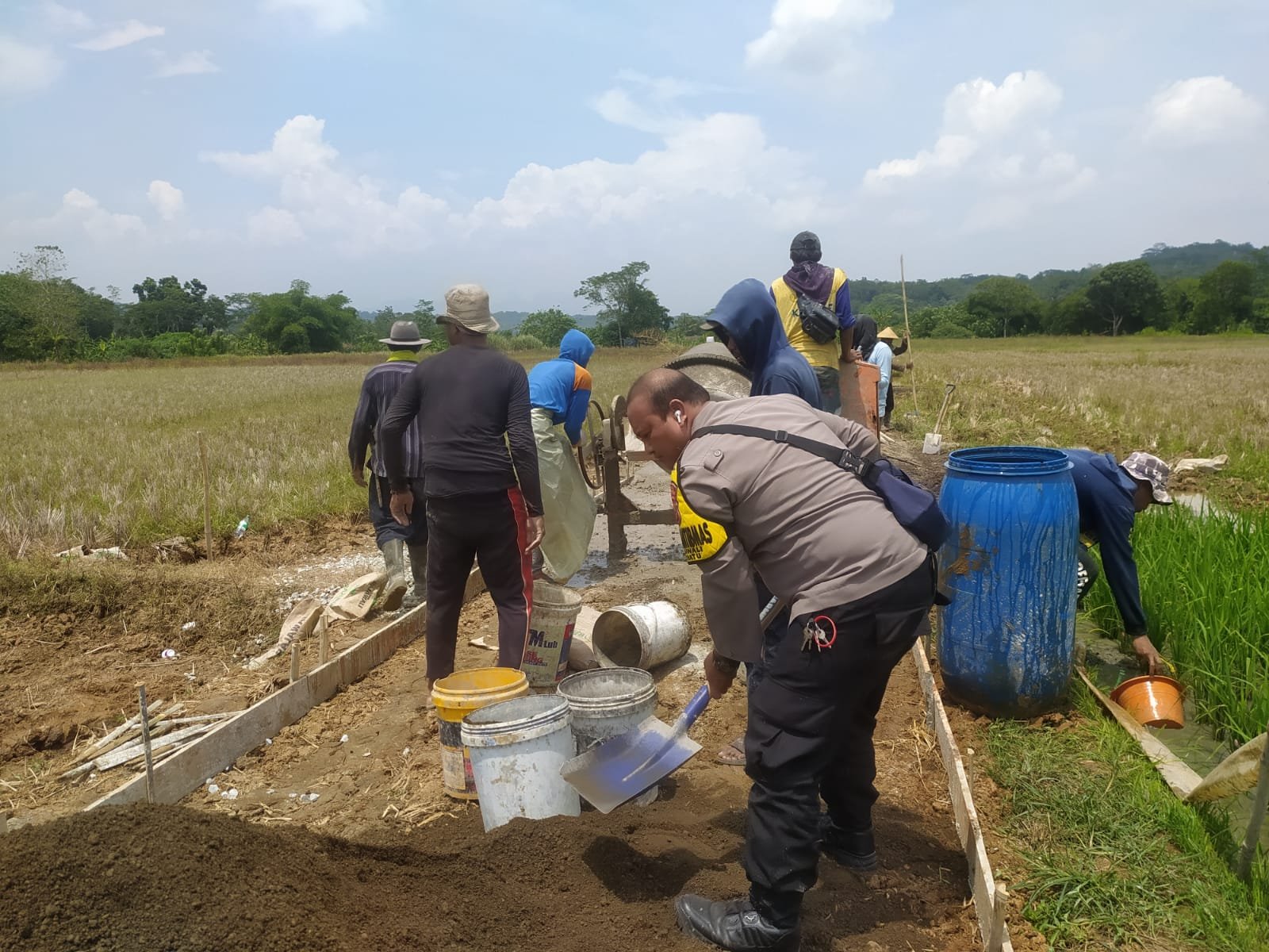 Warga desa menyambut kegiatan ini dengan antusias. Mereka bergotong royong mengerjakan pengecoran, mulai dari menyiapkan bahan material, mengaduk campuran semen, hingga meratakan jalan. Partisipasi aktif warga menunjukkan semangat gotong royong dan harapan akan perbaikan ekonomi di sektor pertanian.