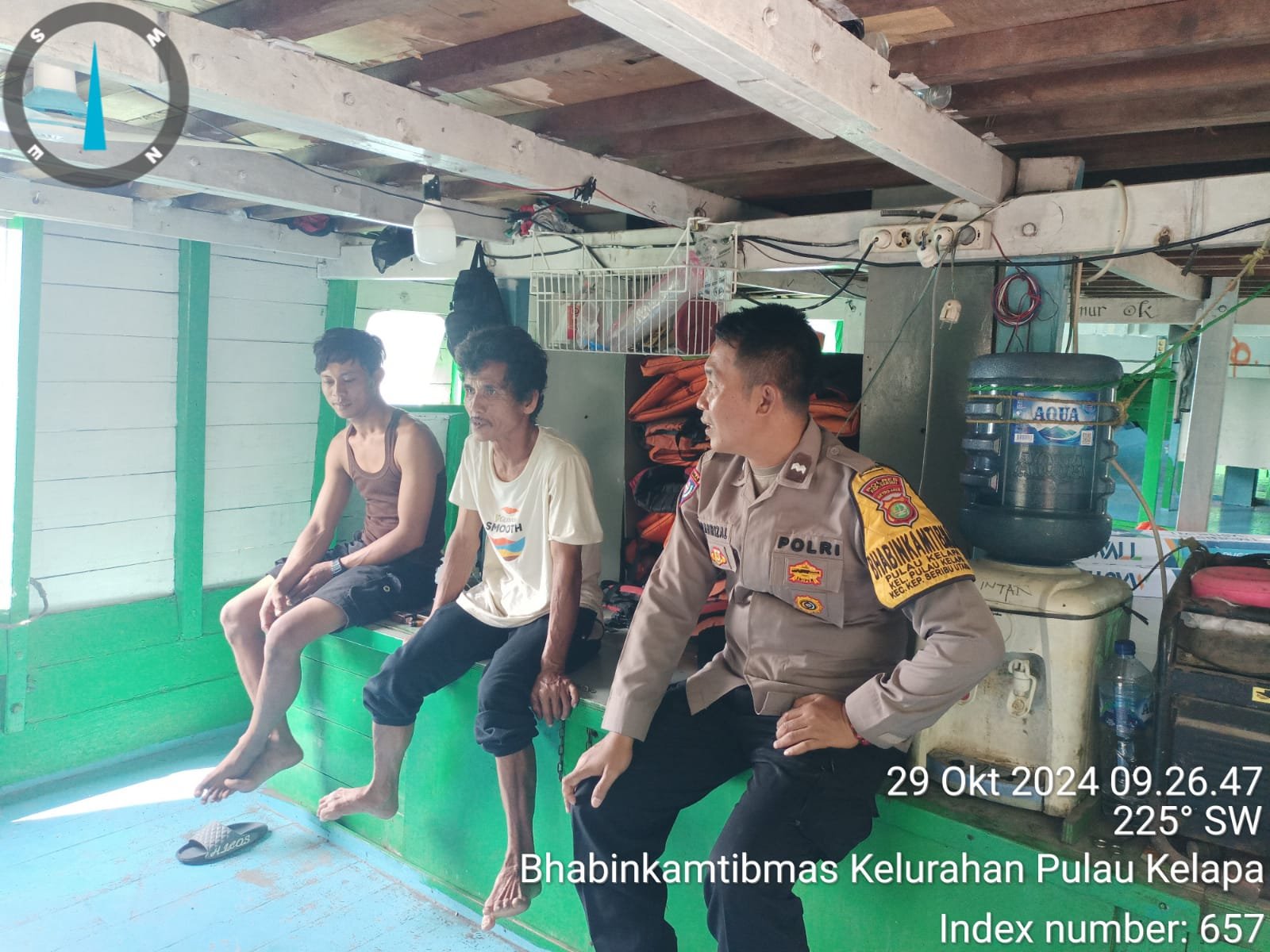 refubliknews.com, – Jakarta – Bhabinkamtibmas Pulau Kelapa, Polres Kepulauan Seribu, Aipda Sahrizal melaksanakan kegiatan sambang dan dialogis bersama para nelayan setempat pada Selasa (29/10/2024). Kegiatan ini dilakukan dalam rangka memberikan himbauan terkait pentingnya menjaga keamanan dan ketertiban masyarakat (Kamtibmas) serta meningkatkan kewaspadaan terhadap kondisi cuaca buruk yang sering terjadi di wilayah perairan Kepulauan Seribu.