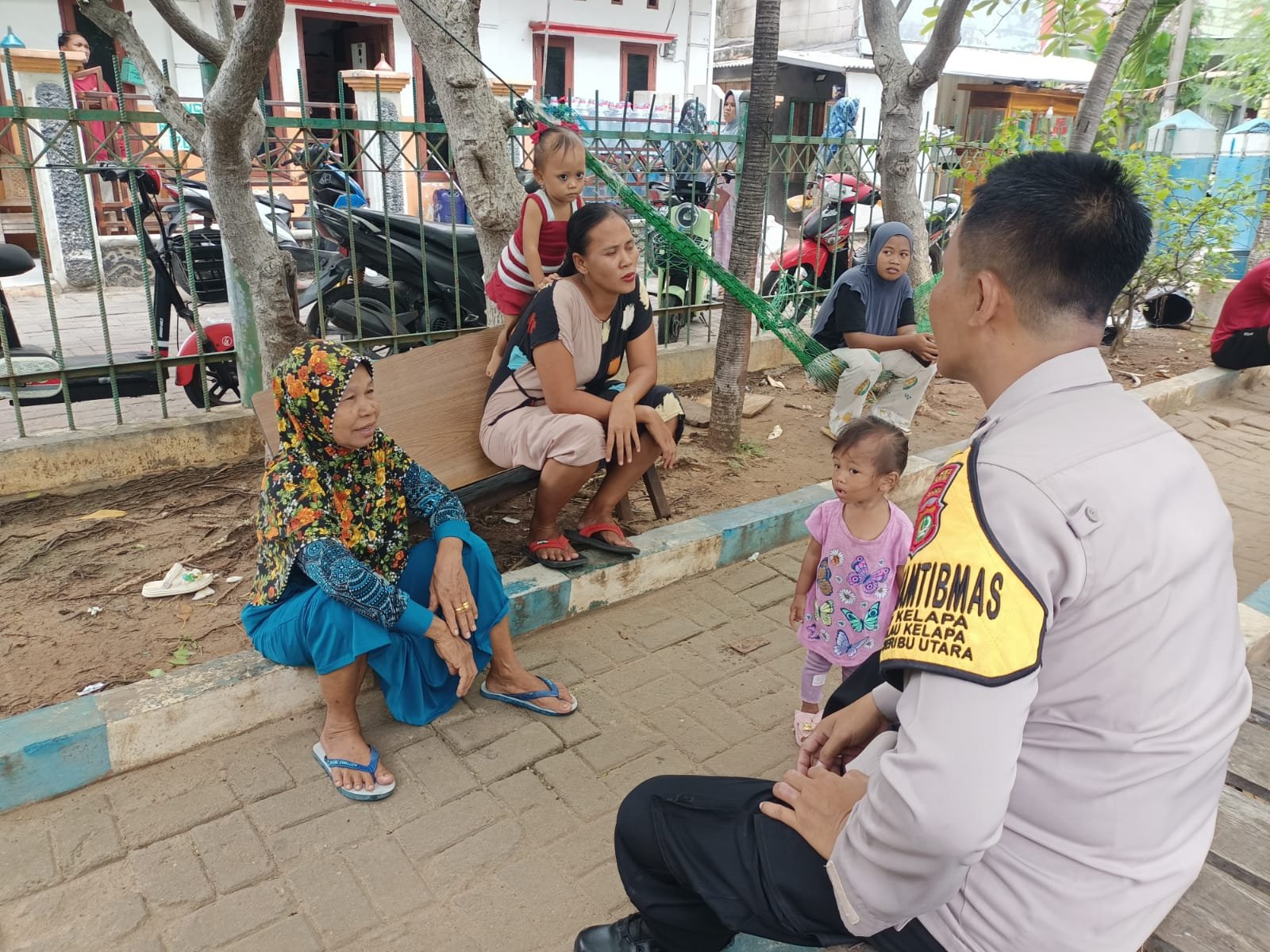 Jakarta – Aipda Sahrizal, seorang Bhabinkamtibmas yang bertugas di Pulau Kelapa, Polres Kepulauan Seribu, melakukan sambang kepada para ibu di wilayah tersebut pada Rabu (28/02/2024). Dalam kunjungannya, Aipda Sahrizal menyampaikan sosialisasi tentang pencegahan stunting serta mengingatkan pentingnya untuk tidak percaya pada informasi palsu atau hoax.