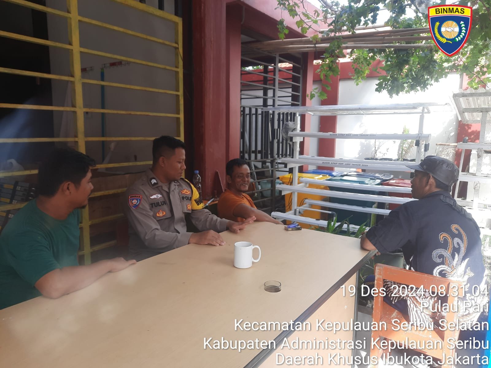 refubliknews.com,- Jakarta – Bhabinkamtibmas Pulau Lancang, Polres Kepulauan Seribu, Briptu Tulus Hidayat, melaksanakan kegiatan sambang ke warga Pulau Lancang pada Jumat (20/12/2024). Dalam sambang tersebut, Briptu Tulus mengajak masyarakat untuk menjaga situasi tetap aman dan sejuk pasca Pilkada DKI Jakarta Tahun 2024, meskipun sempat ada perbedaan pilihan politik.