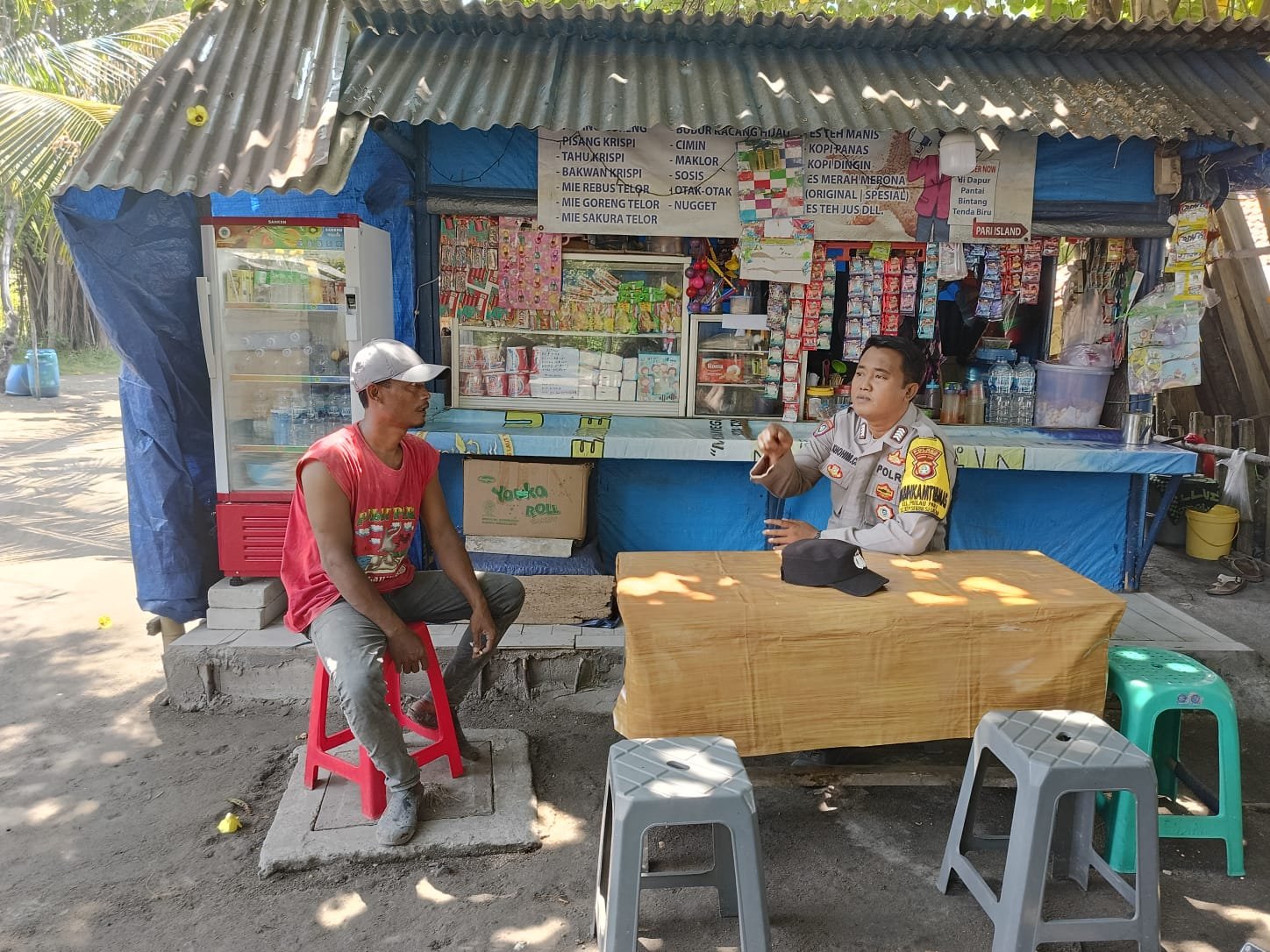Jakarta – Pada Kamis, 24 Agustus 2023, Bripka Kohim Chovivi, seorang Bhabinkamtibmas dari Polres Kepulauan Seribu, melakukan kegiatan sambang kepada Bapak Engkoy, warga Rt 004/04 Kelurahan Pulau Pari. Bapak Engkoy merupakan seorang pedagang kelontong yang dikenal di wilayah tersebut.
