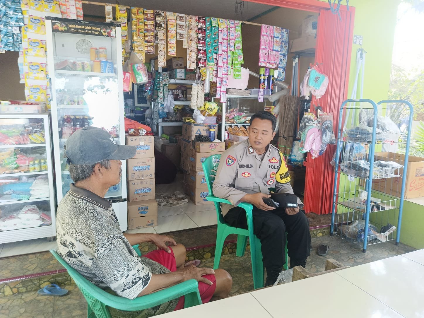 Bapak Azhari, yang telah lama berkecimpung dalam usaha kelontong, menerima kunjungan dari Bripka Kohim Chovivi dengan hangat. Dalam pertemuan yang penuh keakraban tersebut, Bripka Kohim Chovivi menyampaikan pesan-pesan penting terkait keamanan dan ketertiban masyarakat (kamtibmas) kepada pedagang tersebut.