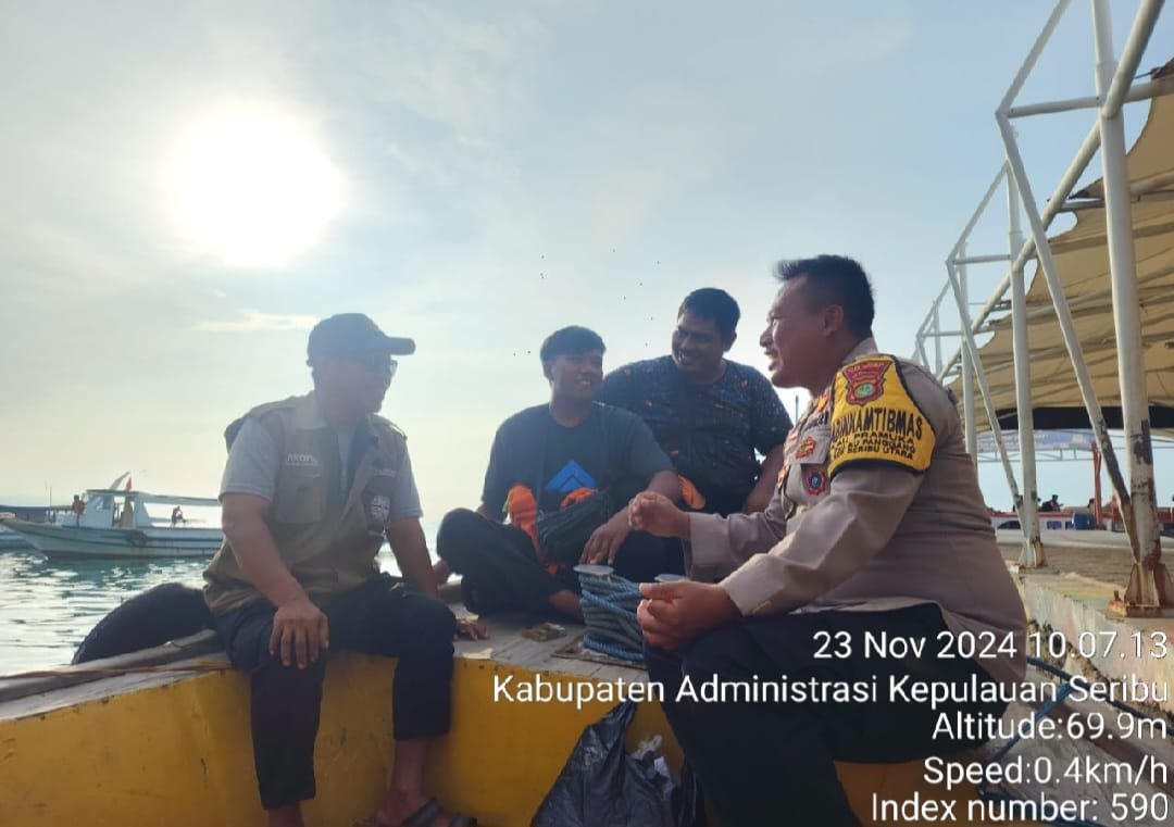 refubliknews.com, – Jakarta – Bhabinkamtibmas Pulau Pramuka, Polres Kepulauan Seribu, Bripka Marwansyah, melaksanakan kegiatan sambang kepada para nelayan di Pulau Pramuka, Sabtu (23/11/2024). Dalam kunjungan ini, Bripka Marwansyah memberikan imbauan penting terkait keselamatan melaut, khususnya penggunaan life jacket dan kewaspadaan terhadap cuaca buruk yang sering terjadi pada akhir tahun.