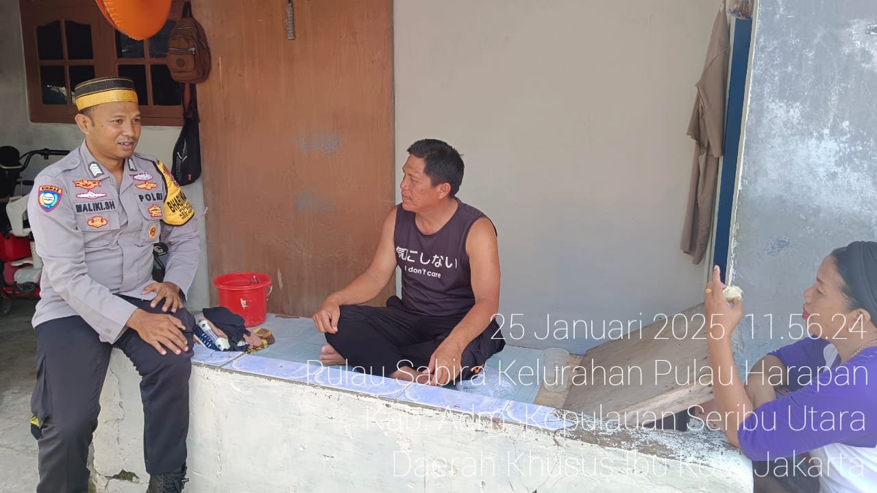 refubliknews.com, – Jakarta – Bhabinkamtibmas Pulau Sabira, Polres Kepulauan Seribu, Bripka Amirulloh Maliki melaksanakan kegiatan sambang tokoh masyarakat pada Minggu (26/01/2025). Kegiatan ini bertujuan untuk mempererat silaturahmi antara masyarakat dan pihak Kepolisian dalam upaya bersama menciptakan dan menjaga keamanan dan ketertiban masyarakat (kamtibmas).