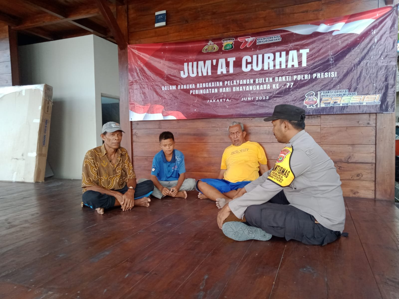 Jakarta – Jumat (22/09/2023), Bhabinkamtibmas Pulau Sabira, Polres Kepulauan Seribu Bripka Amirulloh Maliki, SH, menggelar kegiatan rutin “Jumat Curhat” dengan tujuan membangun dialog, mendengarkan, mencatat, dan mencari solusi terhadap permasalahan kamtibmas yang dihadapi oleh warga Pulau Sabira.