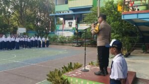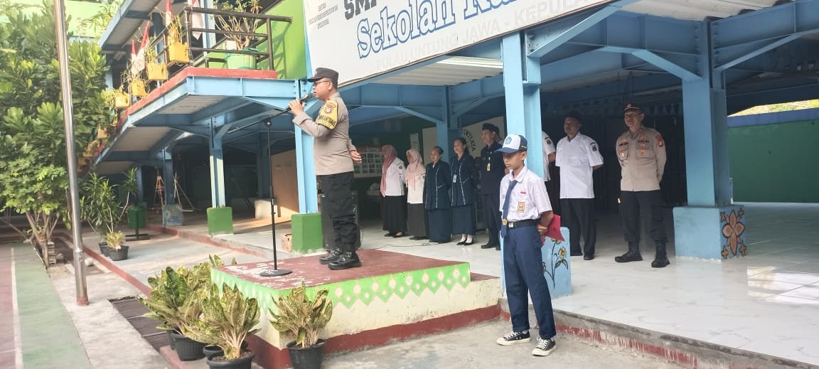 Jakarta, Senin (21/08/2023) – Aipda Masito, seorang Bhabinkamtibmas dari Polres Kepulauan Seribu, dengan penuh semangat memberikan himbauan penting mengenai kamtibmas dan kenakalan remaja kepada para siswa SMPN 285 Jakarta. Himbauan tersebut disampaikan dalam rangka upacara kenaikan bendera yang dilaksanakan di Lapangan sekolah pada Senin pagi.