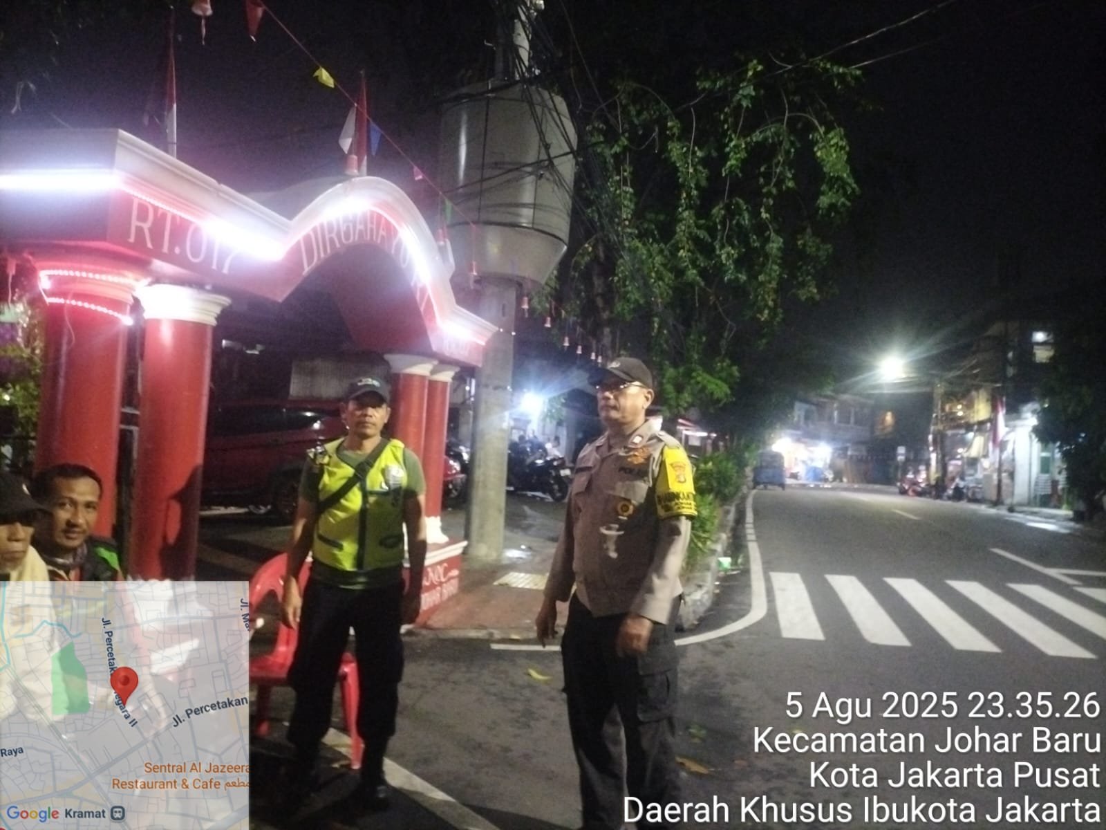 refubliknews.com, || Jakarta Pusat – Untuk menjaga situasi keamanan dan ketertiban masyarakat tetap kondusif, Bhabinkamtibmas Kelurahan Johar Baru Aiptu Sunarto melaksanakan patroli dialogis dan sambang pos keamanan lingkungan (Poskamling) serta cooling system ke wilayah RW 07 Kelurahan Johar Baru, Selasa malam (5/8/2025) pukul 23.45 WIB.