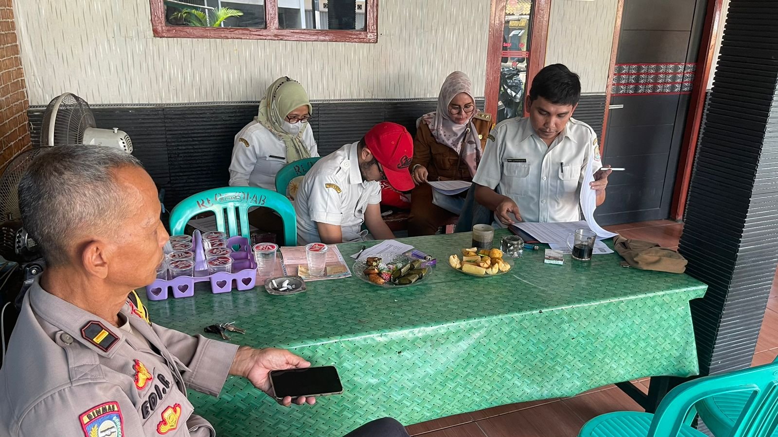 Kegiatan ini dipimpin oleh Bhabinkamtibmas Kelurahan Jatimurni, Ipda Edi Riyatno, yang didampingi oleh Babinsa AD, Koptu Dodi. Mereka mendatangi rumah Bapak Ahmad Fatoni, Ketua RW 01, Jalan H. Tuin, Gang Sadar 1, RT 06/01.