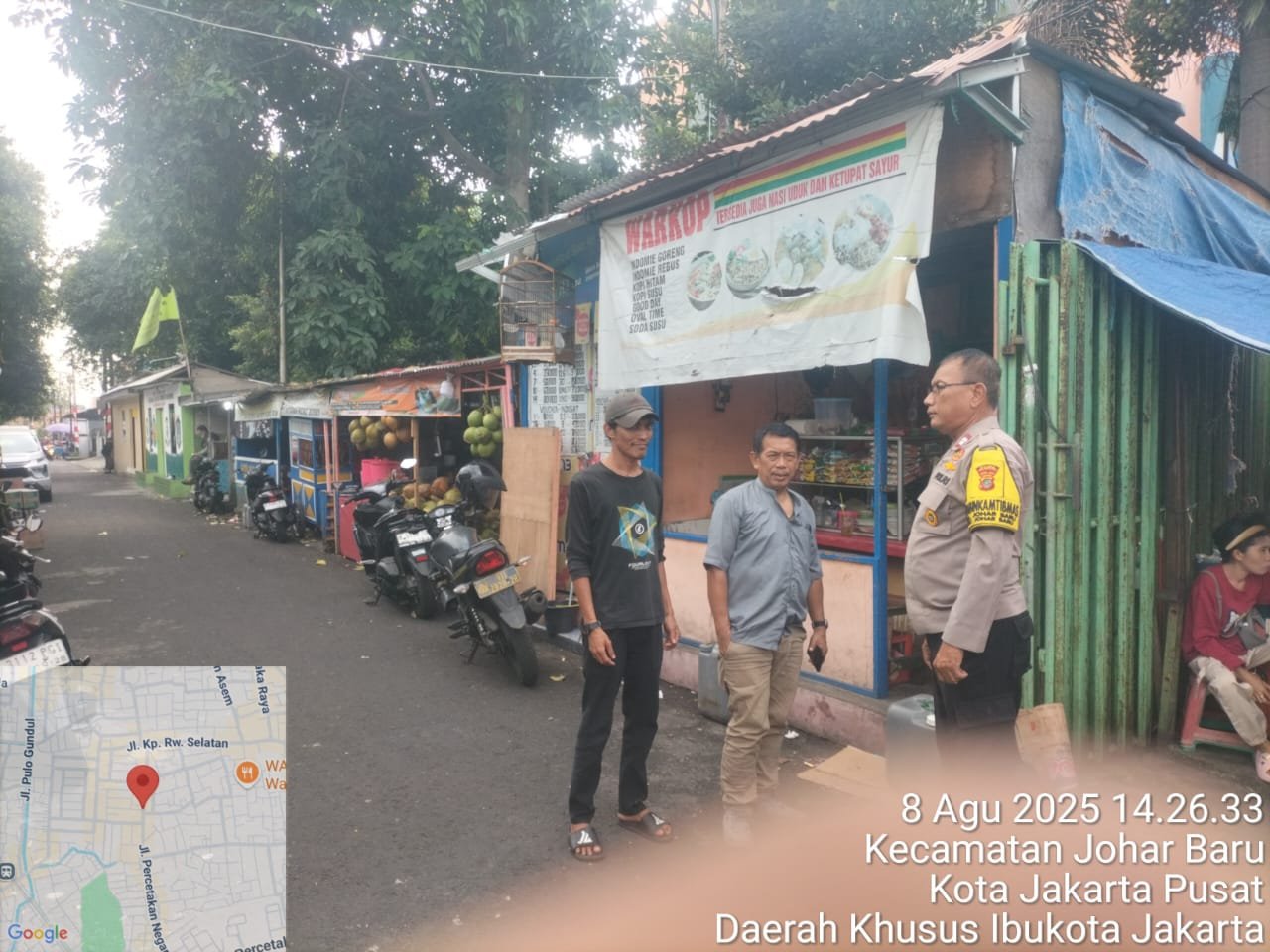 refubliknews.com, || Jakarta Pusat – Dalam upaya menjaga stabilitas keamanan wilayah serta meredam potensi konflik sosial, Bhabinkamtibmas Kelurahan Johar Baru Aiptu Sunarto melaksanakan kegiatan patroli dialogis dan sambang warga secara door to door di wilayah RW 10, Jl. Kramat Jaya Baru, Kelurahan Johar Baru, pada Jumat, 8 Agustus 2025 pukul 14.30 WIB.
