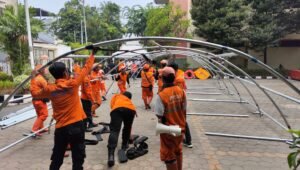 “Pelatihan yang di berikan kepada PPSU ini dilakukan untuk menambah kesiapan personil kita dalam kesiapsiagaan tanggapan serta memberikan pengetahuan tata cara pemasangan tenda yang benar”.ujarnya