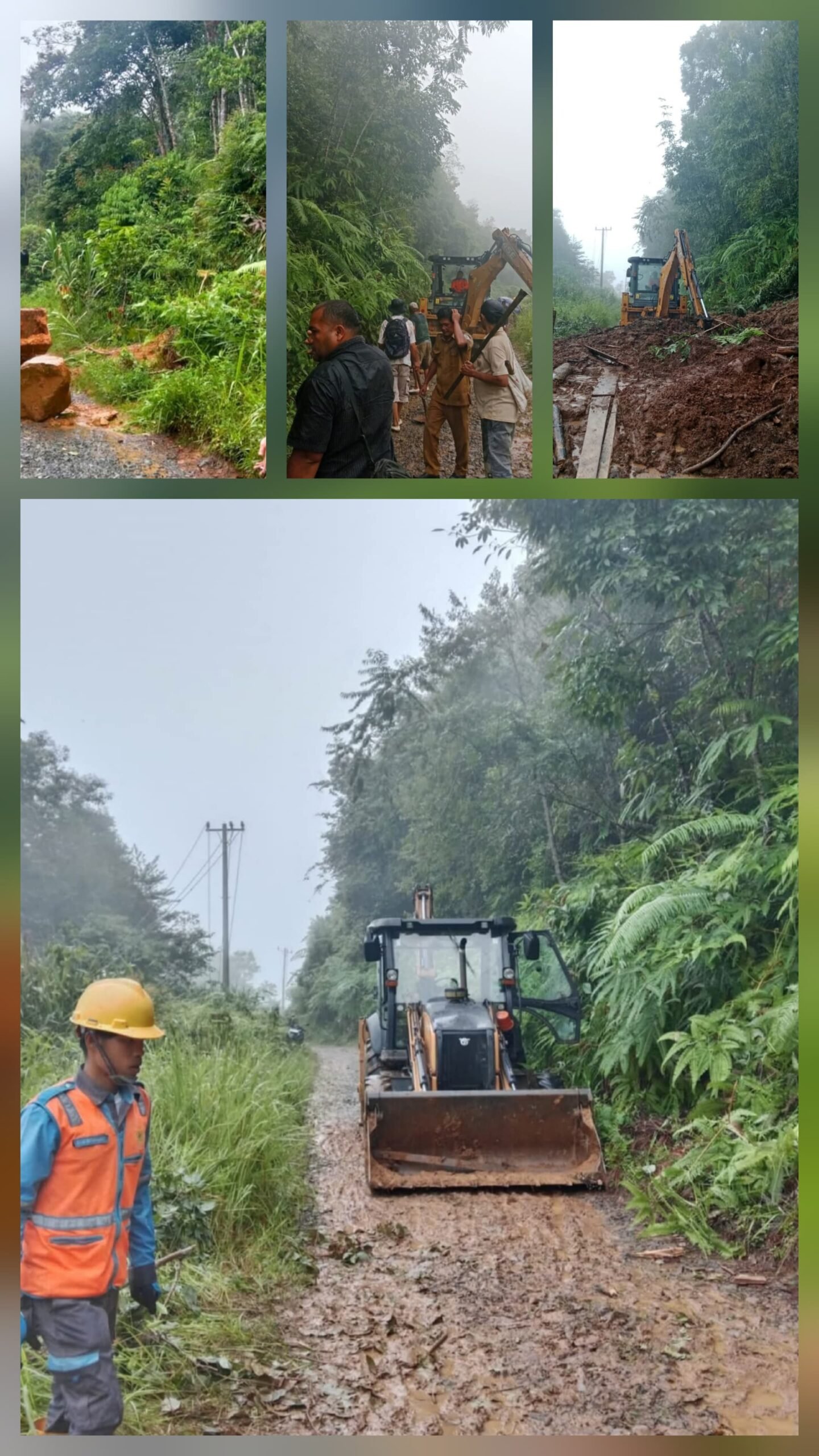 “Tanah longsor di tiga lokasi tersebut menutup badan jalan sehingga tidak dapat di lalui kendaraan roda 2 dan roda 4, sehingga mengganggu aktifitas warga.”