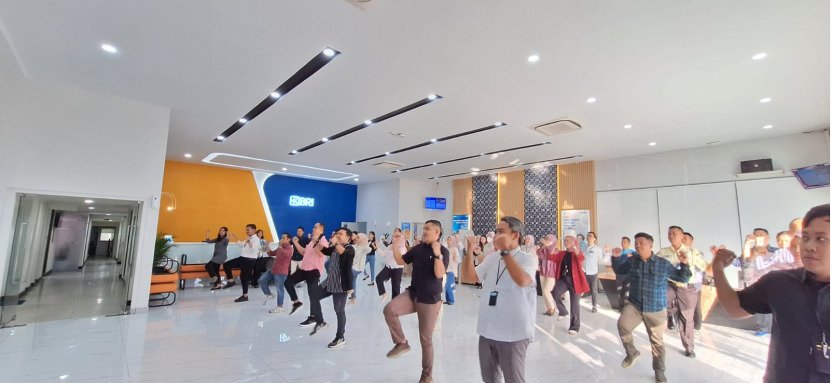 Lebih lanjut, Rizky menjelaskan bahwa senam pagi bukan sekadar rutinitas fisik, melainkan bagian dari strategi manajemen sumber daya manusia untuk mengurangi kejenuhan kerja, meningkatkan semangat, dan menjaga daya tahan tubuh terutama di tengah dinamika pekerjaan yang terus menantang.