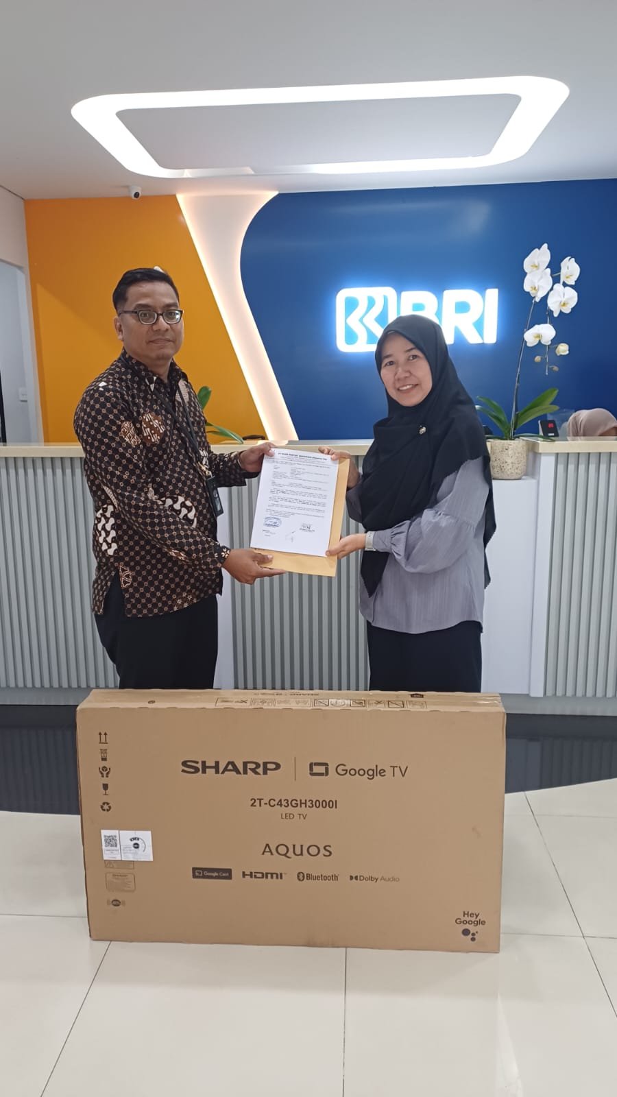 refubliknews.com, || Tangerang, 17 November 2025 – Bank Rakyat Indonesia (BRI) Kantor Cabang Bandara Soetta kembali mengapresiasi loyalitas nasabah melalui program Panen Hadiah Simpedes (PHS). Pada periode undian terbaru, salah satu nasabah beruntung, Dwi Rahayu Setyo Utami, berhasil membawa pulang hadiah berupa satu unit TV 43 inci.Penyerahan hadiah dilakukan secara langsung di Kantor Cabang BRI Bandara Soetta oleh perwakilan manajemen cabang, Bapak Anton Darmawan. Suasana penyerahan berlangsung hangat serta penuh kebahagiaan.