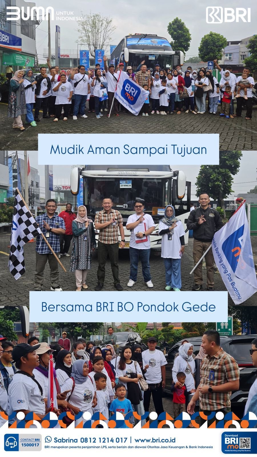 Secara nasional, total sebanyak 100 bus diberangkatkan mudik oleh BRI melalui program tersebut. Ratusan bus tersebut membawa 5.000 nasabah BRI. Adapun satu bus di antaranya diberangkatkan dari BRI Kantor Cabang (KC) Pondok Gede.