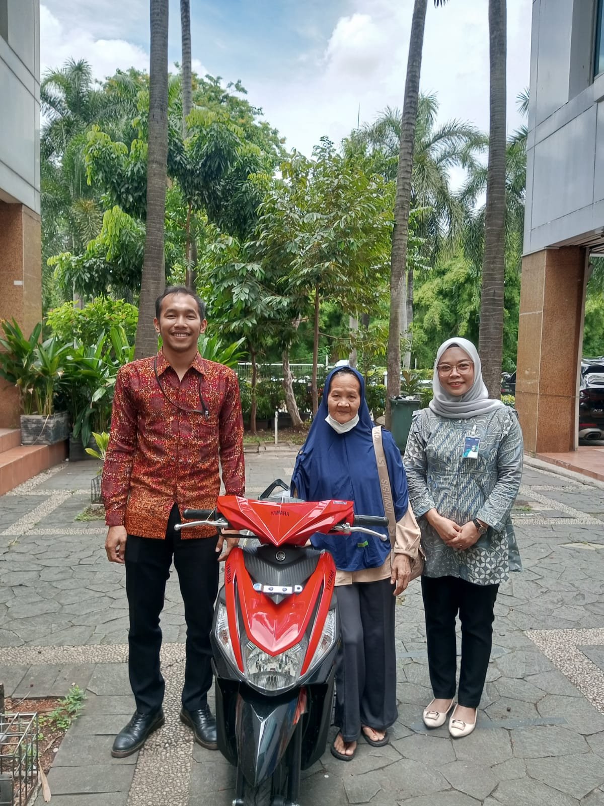Penyerahan hadiah dilakukan secara langsung oleh perwakilan BRI Kantor Cabang Puri Niaga, disaksikan oleh Pemimpin Cabang BRI Puri Niaga, Akhmad Fajar, di halaman kantor cabang.
