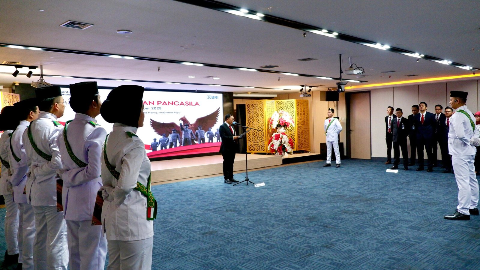 Rangkaian upacara berlangsung dengan khidmat, diawali dengan pengibaran bendera Merah Putih, pembacaan teks Pancasila, mengheningkan cipta, hingga pembacaan doa bersama. Seluruh jajaran manajemen, pimpinan cabang, dan pegawai BRI Regional Office 7 Jakarta 2 turut hadir dengan penuh semangat nasionalisme.