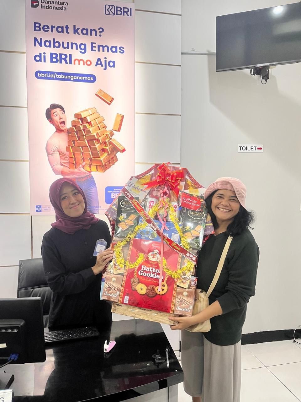Dalam kegiatan tersebut, petugas BRI Unit Kelapa Dua secara langsung menyerahkan hampers kepada nasabah dengan protokol yang aman dan tertib. Pembagian hampers ini tidak hanya memberikan kebahagiaan bagi nasabah, tetapi juga menjadi bentuk apresiasi atas kepercayaan masyarakat dalam menggunakan layanan perbankan BRI.