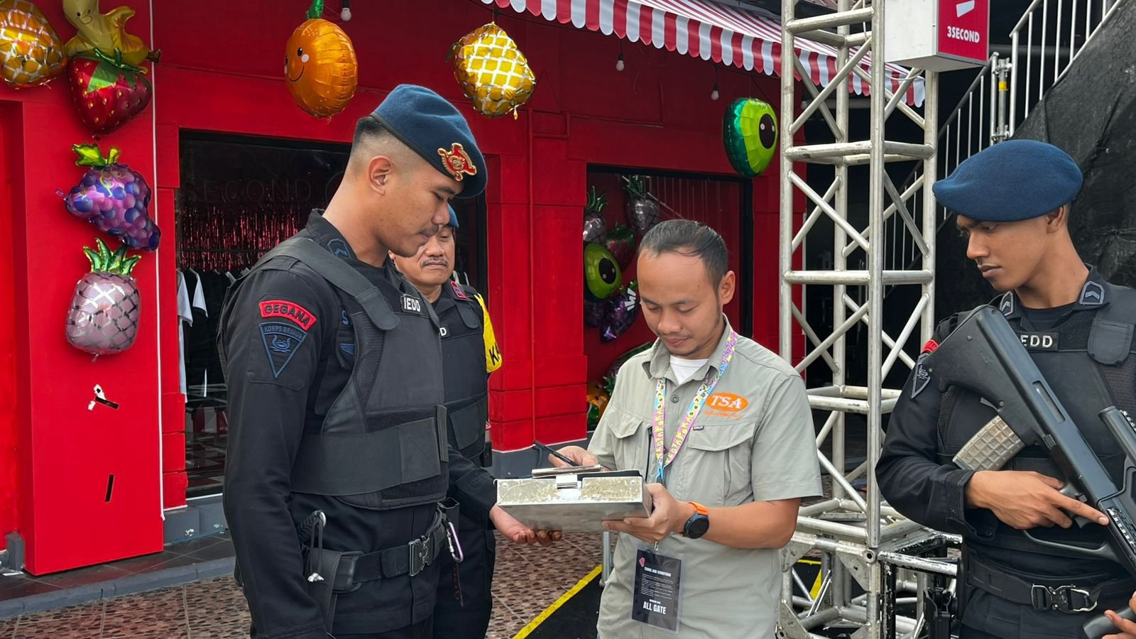 Penyisiran dilakukan dengan standar pengamanan tinggi, menggunakan keahlian dan peralatan khusus. Hasilnya, seluruh lokasi dinyatakan aman tanpa ditemukan bahan peledak maupun ancaman berbahaya lainnya. Pukul 07.30 WIB, kegiatan sterilisasi diselesaikan dengan serah terima berita acara kepada pihak panitia yang diwakili oleh Bapak Hasan. Hingga pukul 08.00 WIB, situasi di lokasi terpantau kondusif dan siap menyambut ribuan pengunjung.