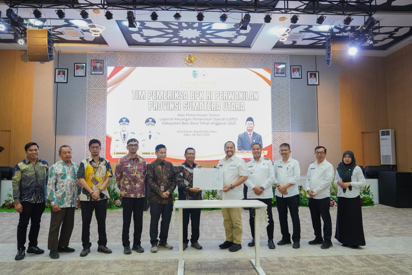 Bupati Batu Bara H. Baharuddin Siagian, S.H., M.Si., memimpin langsung Entry Meeting atas Pemeriksaan Terinci Laporan Keuangan Pemerintah Daerah (LKPD) Kabupaten Batu Bara yang dilaksanakan di Aula Kantor Bupati Batu Bara, Kecamatan Lima Puluh, Rabu (8/4/2026).