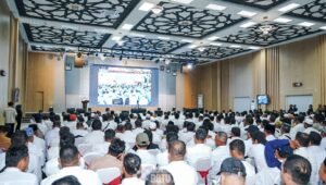 Zoom meeting yang dipimpin langsung oleh Presiden Republik Indonesia Prabowo Subianto diselenggarakan di Aula Kantor Bupati Batubara, Kecamatan Lima Puluh, Senin (21/07/2025).