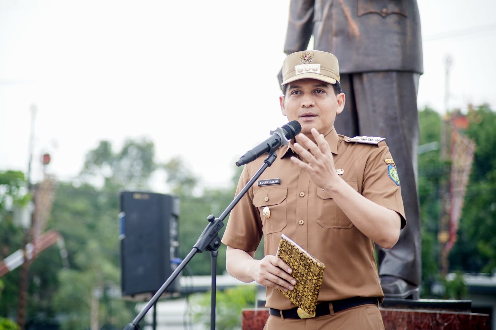 “Kehadiran saya bersama wabup tentu saja tidak berarti apa-apa tanpa sinergitas dan kolaborasi ASN yang bekerja di pemerintahan. Untuk itu mari saling menguatkan yang belum beres kita bereskan. Kita bikin enak suasana kerjanya,” kata Lucky Hakim.