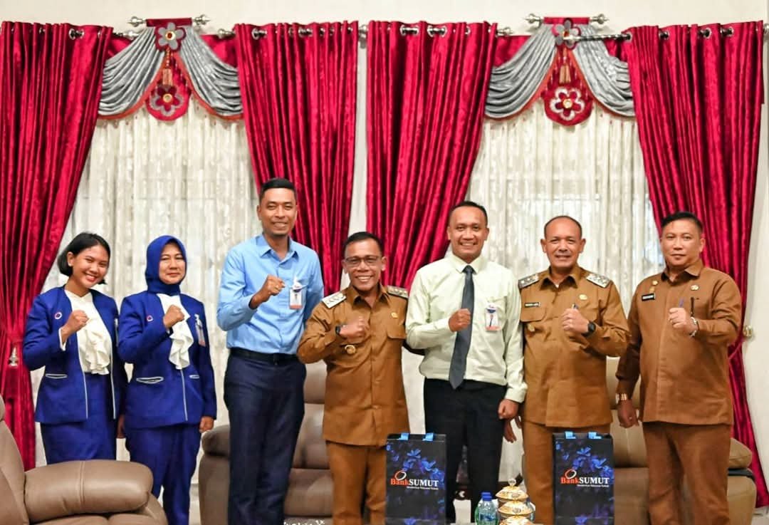 PANDAN | Bupati Tapanuli Tengah Masinton Pasaribu, SH didampingi Wakil Bupati Tapanuli Tengah Mahmud Efendi mengajak peran serta Bank Sumut dalam pengembangan ekonomi kreatif Anak Muda agar perkembangan ekonomi di Kabupaten Tapanuli Tengah semakin bertumbuh dengan baik. Hal ini disampaikan ketika menerima audiensi Kepala Cabang Bank Sumut Pandan Surya Adiwinata beserta jajaran di Ruang Kerja Bupati Tapanuli Tengah, pada Senin (03/03/2025).