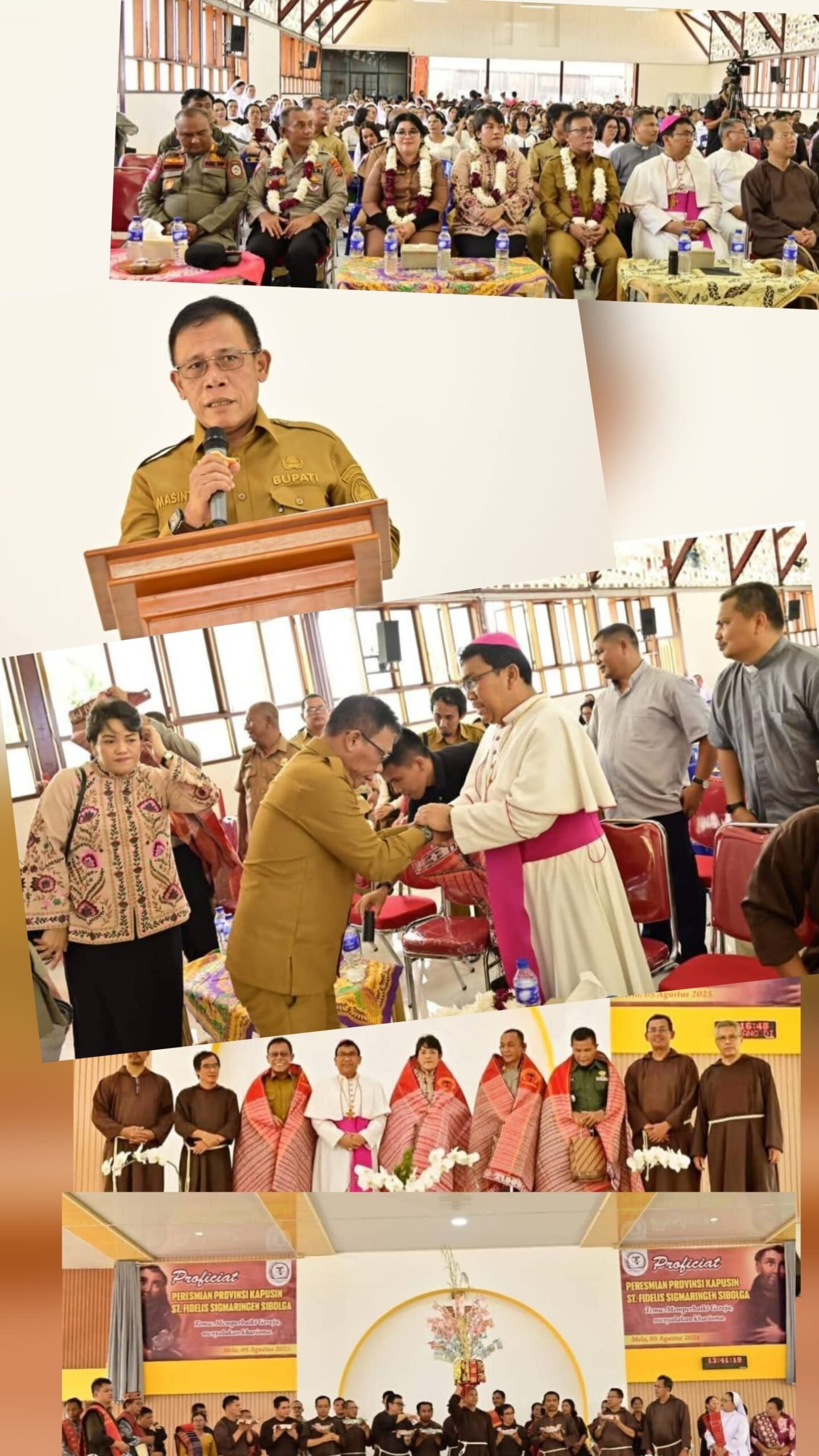Bupati Tapanuli Tengah, Masinton Pasaribu, SH, MH, menyampaikan, Selamat atas Perayaan Ekaristi Inaugurasi Provinsi Kapusin Sibolga. Pemerintah Kabupaten Tapanuli Tengah mengucapkan terima kasih kepada Gereja Katolik yang selama ini eksistensinya, perannya untuk membangun masyarakat Tapanuli Tengah dan Sibolga, baik itu dalam Keimanan, Pelayanan Kemasyarakatan, Pendidikan, dan lain sebagainya .