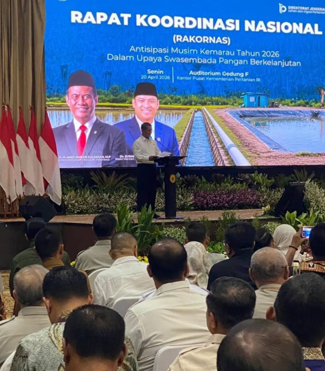 JAKARTA – Dalam upaya mewujudkan Swasembada Pangan serta penguatan sektor pertanian secara Nasional di tengah tantangan perubahan Iklim dan potensi kekeringan maka perlu mengantisipasi ketersediaan bahan pangan. Untuk itu, Kementerian Pertanian pada Senin 20 April 2026, menggelar Rapat kerja Nasional (Rakernas) bertempat di Auditorium Gedung F Kantor Pusat Kementerian Pertanian RI di Jakarta.