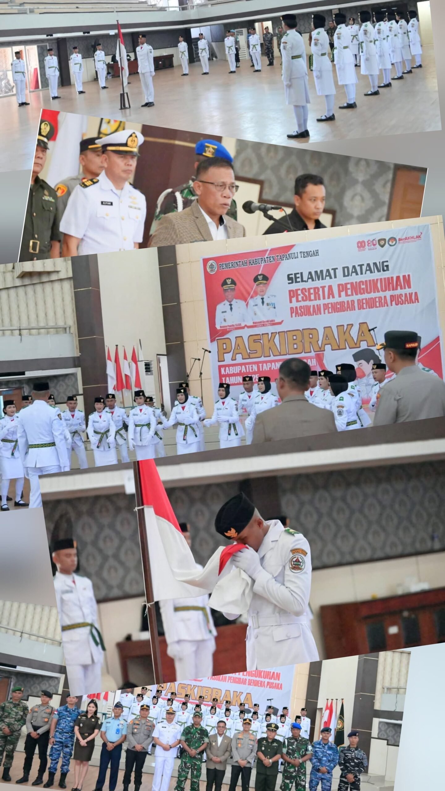 mengukuhkan 25 orang Pasukan Pengibar Bendera Pusaka (Paskibraka) Kabupaten Tapanuli Tengah dalam rangka Penaikan dan Penurunan Bendera Merah Putih Hari ulang Tahun ke-80 Kemerdekaan Republik Indonesia, Pengukuhan ini dilaksanakan Gedung Serbaguna Pandan Kabupaten Tapanuli Tengah, Jum’at (15/08/2025).