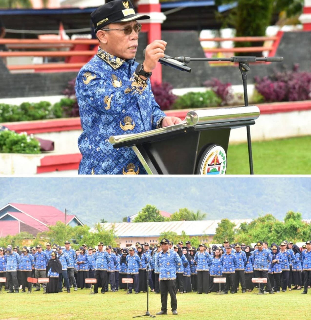 Turut hadir Wakil Bupati Tapteng Mahmud Efendi, Sekretaris Daerah Kabupaten Tapteng Drs. Binsar Tua Hamonangan Sitanggang, M.SP, para Staf Ahli Bupati, para Asisten Setdakab Tapteng, Pimpinan OPD Tapteng, Pejabat Administrator, Pejabat Teknis, dan Fungsional, serta ASN di Lingkungan Pemkab Tapteng.