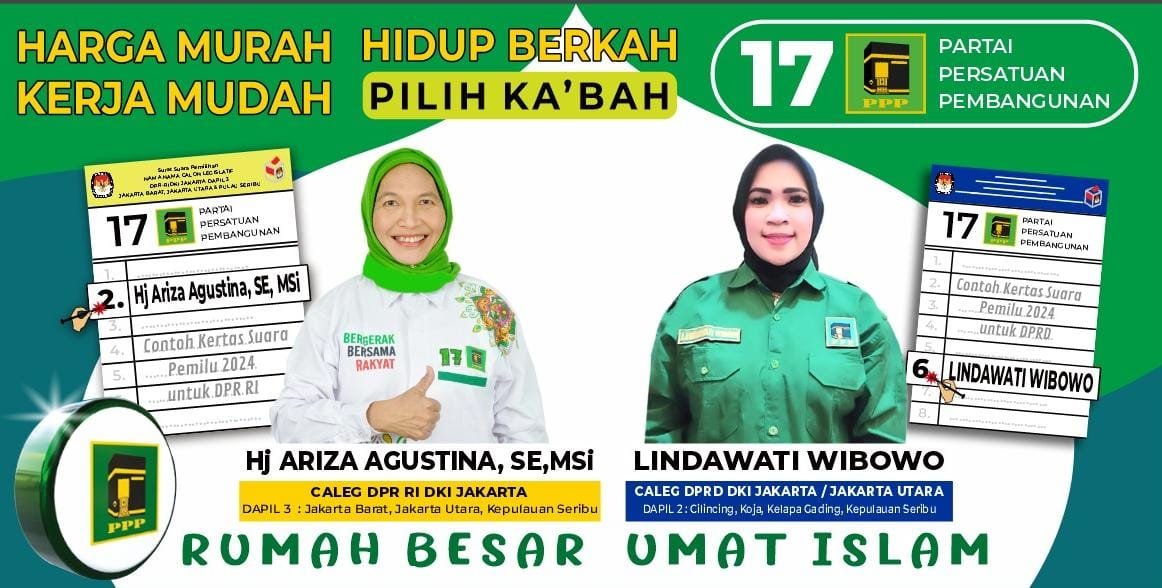 Calon Legislatif (Caleg) DPR RI Dapil DKI 3 dari PPP yang mencakup wilayah Jakarta Barat, Utara dan Kepulauan Seribu Hj. Ariza Agustina SE, MSi, dan juga Calon Legislatif DPRD DKI Dapil 2 yang mencakup wilayah Kecamatan Cilincing, Koja, Kelapa Gading dan Kepulauan Seribu Lindawati Wibowo adakan senam bersama di Sanggar Cantik Ciketh Aero, Sungai Brantas, no 38, Sempet Barat, Jakarta Utara. Di ikuti oleh 100 orang peserta. Selasa 2 January 2024.