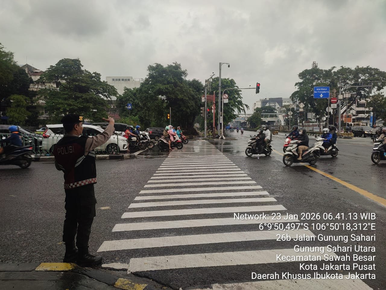 Pengaturan lalu lintas dilakukan di sejumlah titik rawan kepadatan, yakni TL Wahiddin, TL Pertigaan Katedral, TL depan Ursula Banteng Utara, serta TL MBAL Gunung Sahari, Jakarta Pusat. Personel disiagakan untuk mengantisipasi padatnya arus kendaraan dan potensi gangguan keamanan di jam sibuk pagi.