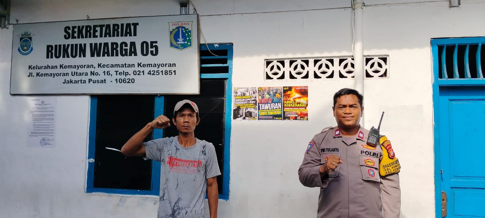 Petugas yang terlibat dalam kegiatan ini adalah Aiptu Dwi Yulianto, Bhabinkamtibmas Kelurahan Kemayoran. Pemasangan stiker dilakukan di Kantor Sekretariat Pos RW 02 dan RW 05, dengan pesan-pesan seperti: