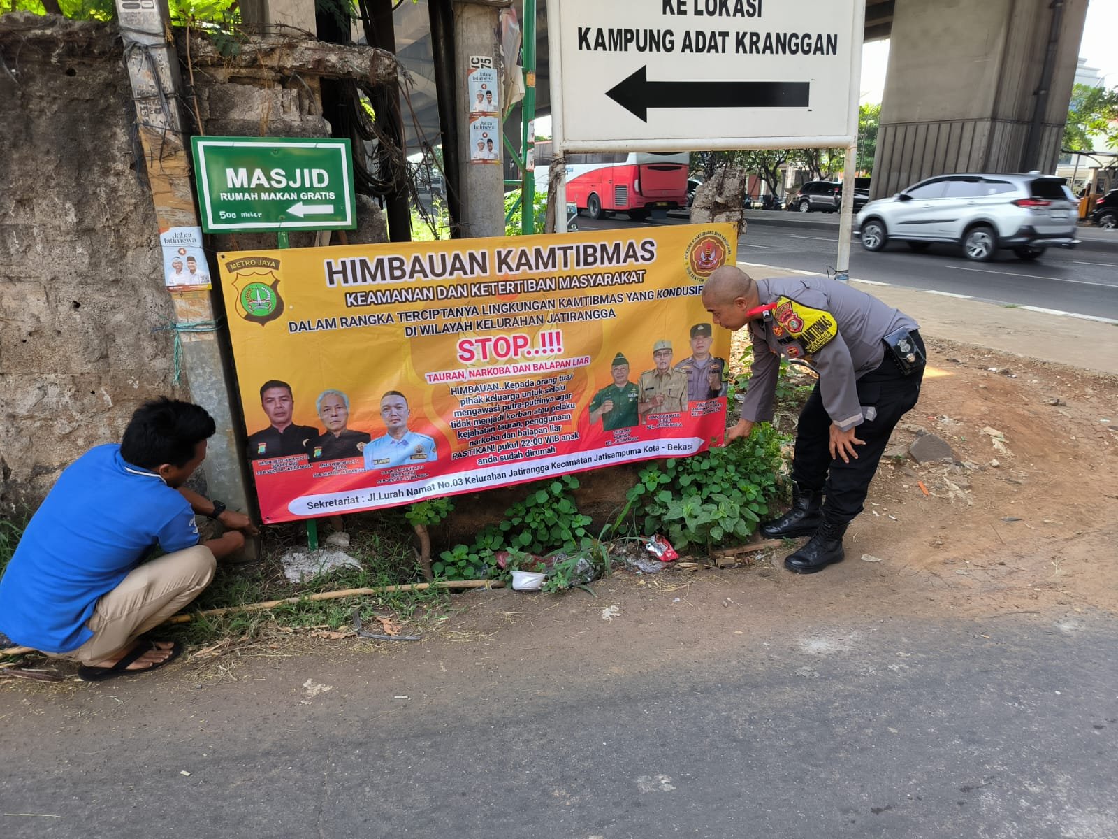 refubliknews.com, – Bekasi Kota , – Bhabinkamtibmas Kelurahan Jatirangga, Bripka Yasir Arfaki, bersama warga dan perwakilan kelompok sadar keamanan dan ketertiban masyarakat (Pokdar Kamtibmas) memasang spanduk berisi imbauan untuk menghentikan tawuran di Jalan Ataqwa RT 01/01, Kelurahan Jatirangga, Kecamatan Jatisampurna, Kota Bekasi, Selasa (22/10/2024). Kegiatan ini dimulai pukul 08.50 WIB dan berlangsung hingga selesai.