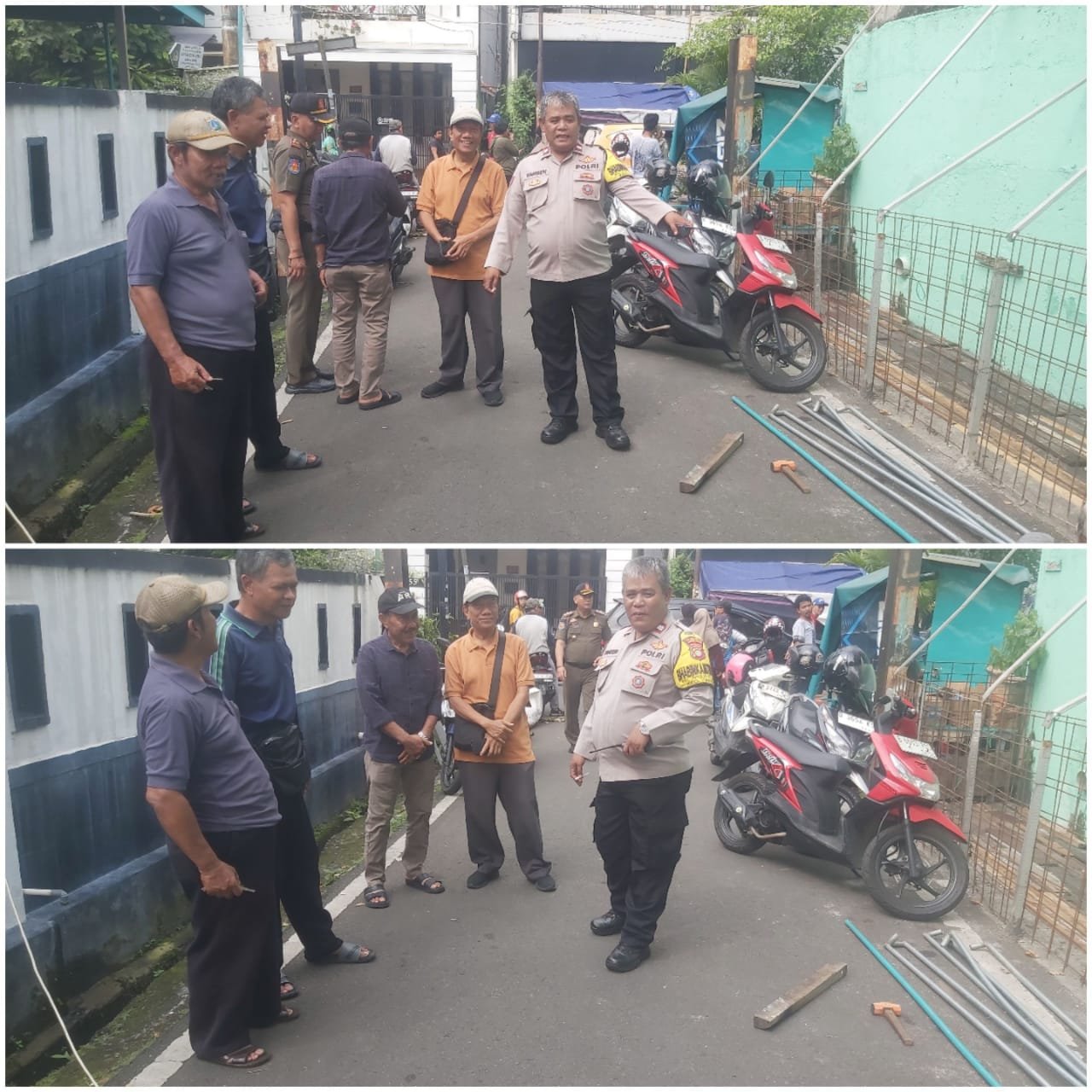 Dalam kegiatan yang dipimpin oleh Bhabinkamtibmas Kelurahan Petojo Selatan, Aiptu Yansen, pihak kepolisian berinteraksi langsung dengan warga setempat serta Ketua RW 04, Bapak Dedi, guna membangun komunikasi dan kerja sama dalam menjaga keamanan lingkungan.