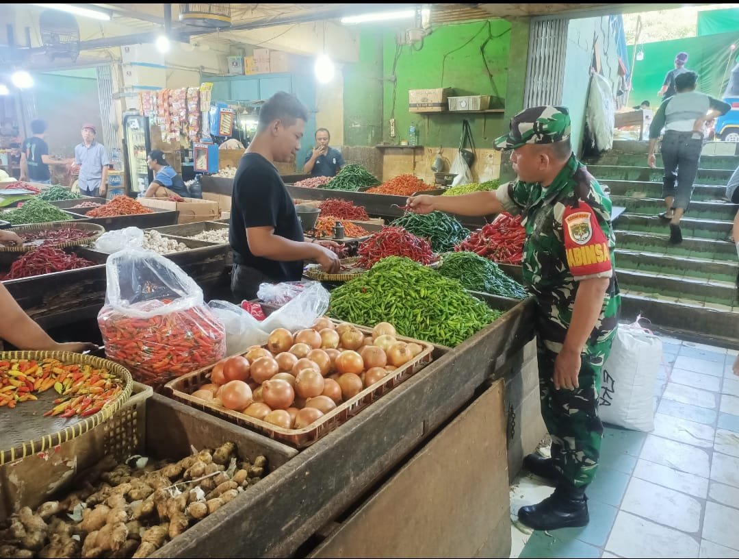 Kegiatan dimulai pada pukul 08.30 wib, Babinsa Serda Candra turun langsung dan mendata harga bahan pokok di pasar dengan cara menyapa langsung para pedagang.