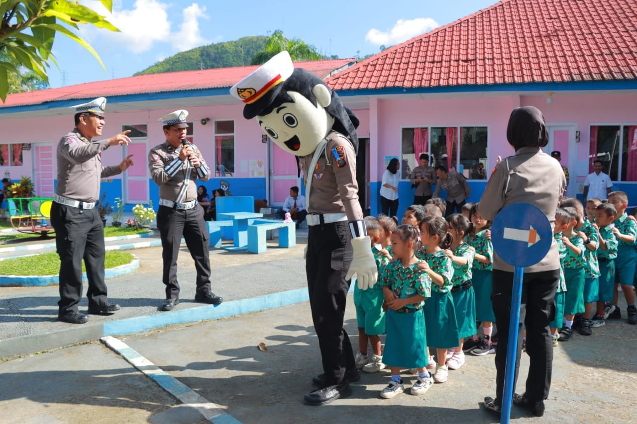 SIBOLGA – Dalam upaya mendekatkan diri kepada masyarakat, khususnya anak-anak, Satuan Lalu Lintas Polres Sibolga melaksanakan kegiatan Polisi Sahabat Anak (Polsanak) di Sekolah Taman Kanak-Kanak Yayasan Kemala Bhayangkari 12 Sibolga, Jalan KH. Zainul Arifin Kelurahan Simaremare Kecamatan Sibolga Utara, Kota Sibolga. Kegiatan ini dilaksanakan pada hari Selasa, 22 Oktober 2024, mulai pukul 08.15 WIB hingga selesai.