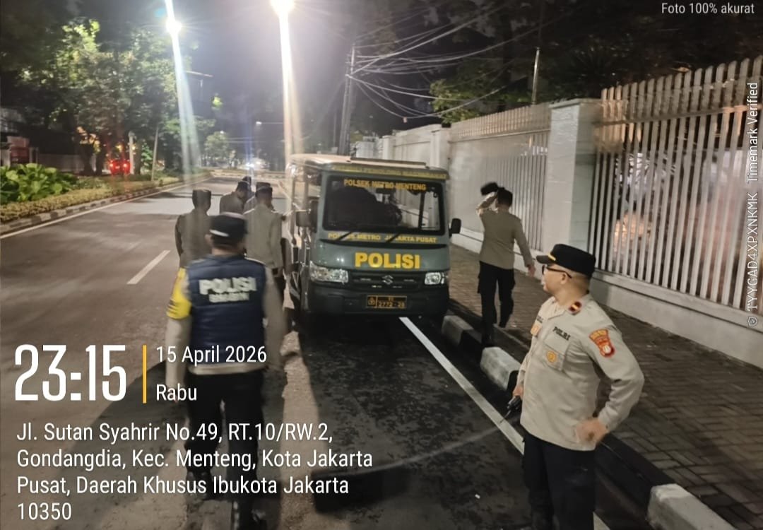 Jakarta Pusat – Dalam rangka menjaga stabilitas keamanan dan ketertiban masyarakat (kamtibmas), jajaran Polsek Metro Menteng terus mengintensifkan kegiatan patroli cipta kondisi (cipkon) di wilayah strategis. Salah satu lokasi yang menjadi fokus pengamanan adalah kawasan Jalan Teuku Umar, Menteng, Jakarta Pusat, yang memiliki aktivitas cukup tinggi, terutama pada malam hari. Kamis (16/4/2026)