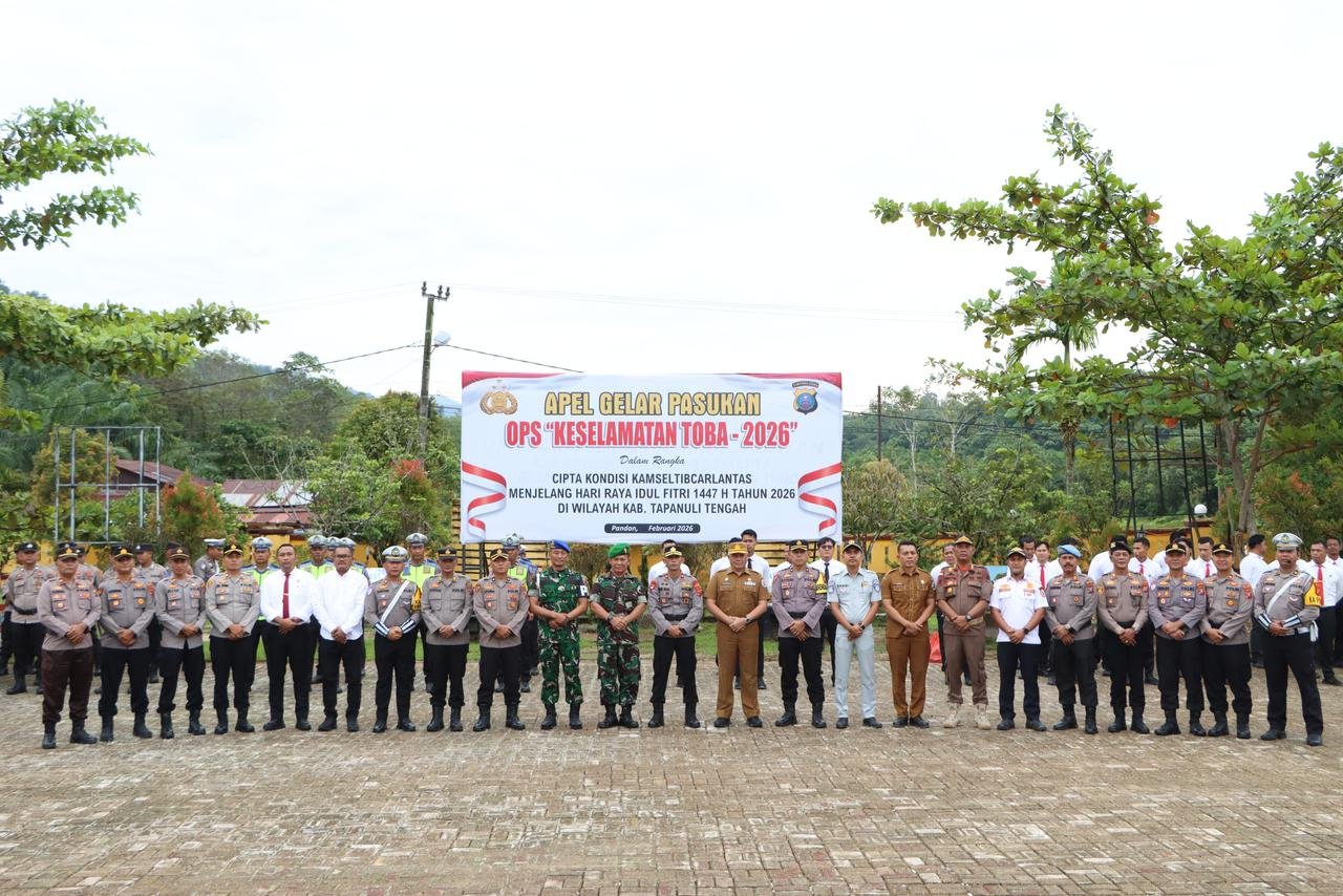 refubliknews.com,- TAPANULI TENGAH – Dalam rangka menciptakan situasi keamanan, keselamatan, ketertiban, dan kelancaran lalu lintas (Kamseltibcarlantas) yang kondusif menjelang Hari Raya Idulfitri 1447 Hijriah, Polres Tapanuli Tengah menggelar Apel Gelar Pasukan Operasi Kepolisian Kewilayahan “Keselamatan Toba 2026”. Apel ini dilaksanakan di lapangan Mapolres Tapanuli Tengah, Senin (2/2/2026) pagi.