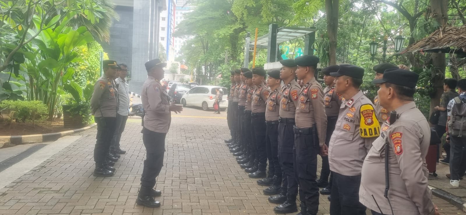 Apel pengamanan dilaksanakan di halaman Pengadilan Negeri Jakarta Pusat sekitar pukul 08.55 WIB dan dipimpin oleh Kanit Binmas Polsek Kemayoran, Iptu Sutono. Pengamanan dilakukan terhadap sidang perkara Nomor 691/Pid.B/2025/PN JKT.Pst dengan agenda pemeriksaan saksi terhadap 21 terdakwa, yang digelar di Ruang Kusumaatmaja 4 lantai 1.