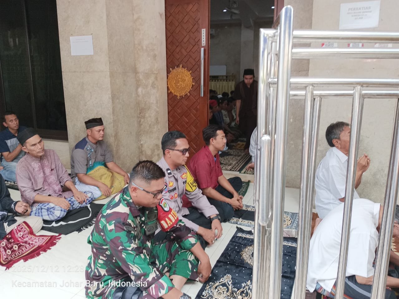 Jakarta Pusat — Upaya menjaga stabilitas keamanan wilayah terus diperkuat melalui kegiatan cooling system yang dilaksanakan Polsek Johar Baru. Pada Jumat (12/12/2025) pukul 11.40 WIB, Bhabinkamtibmas Kelurahan Kampung Rawa, Aipda Ikhwan, bersama Babinsa Serda Trynaldi, melaksanakan Salat Jumat keliling di Masjid Shulhul Majaami, Jl. Rawa Selatan 3 RT 06 RW 05, Kelurahan Kampung Rawa, Kecamatan Johar Baru, Jakarta Pusat.